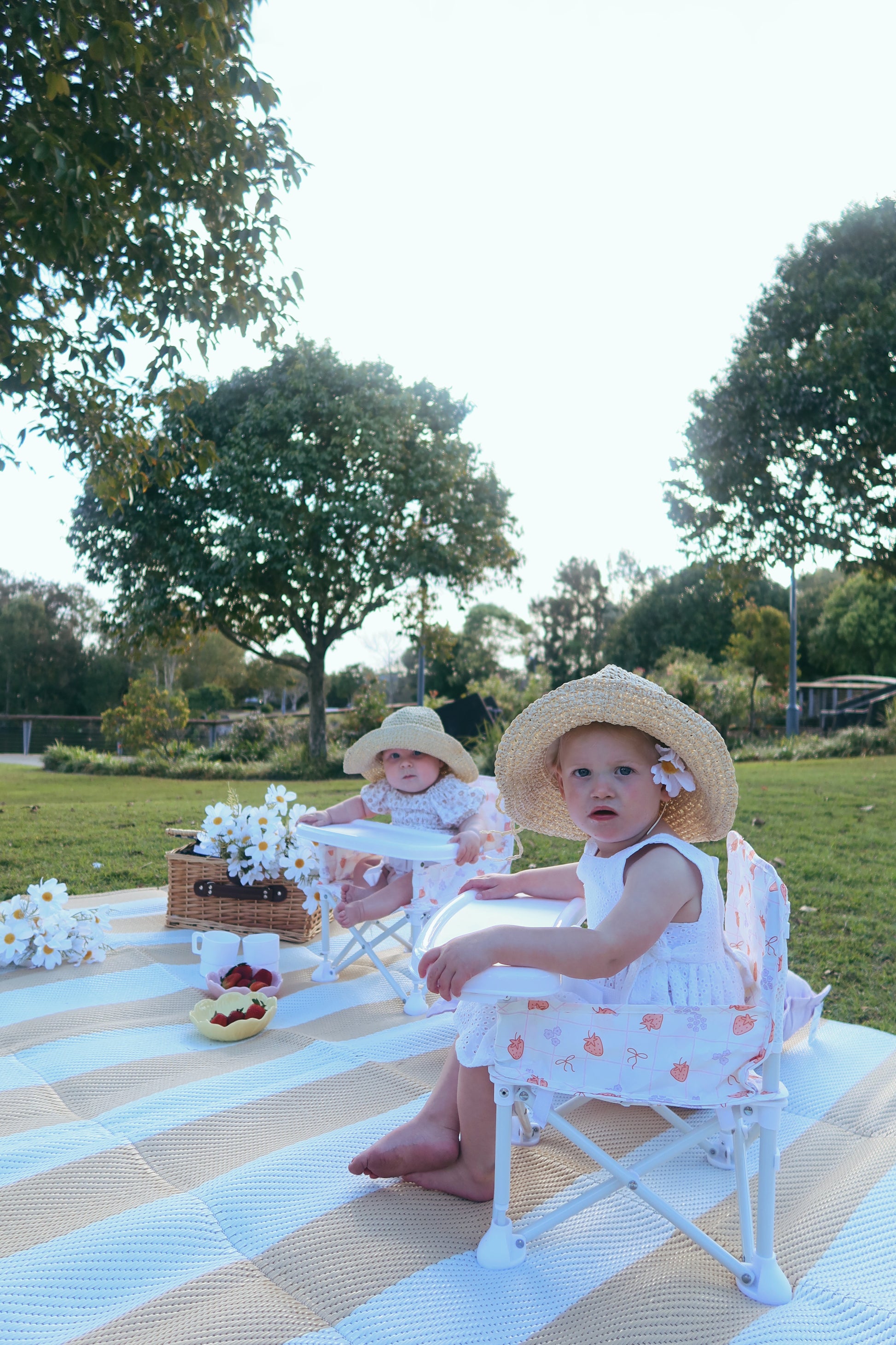 Introducing the Sandy Bums Portable Baby chair—your go-to solution for feeding your little one, no matter where you are. Designed with versatility in mind, this chair is perfect for the beach, picnics, restaurants, park outings, or even at home at the dining table. With its easy-to-use straps, it securely attaches to most dining chairs, offering a snug and adjustable fit for your child.